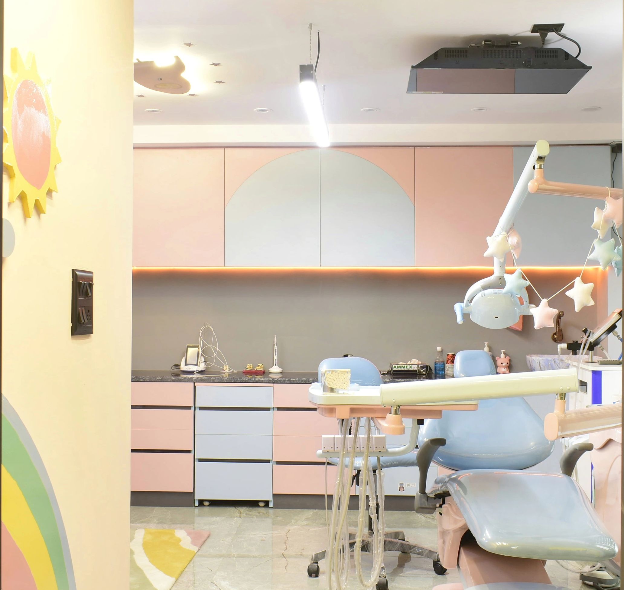 Our Clinics are designed to make children feel comfortable and safe during their dental visits. We have a playful atmosphere, Gaming Zone, dedicated Play Area with colorful decor and fun activities for kids to participate in. We also have special equipment and techniques that are designed specifically for children, such as smaller dental tools and a more gentle approach to treatment.